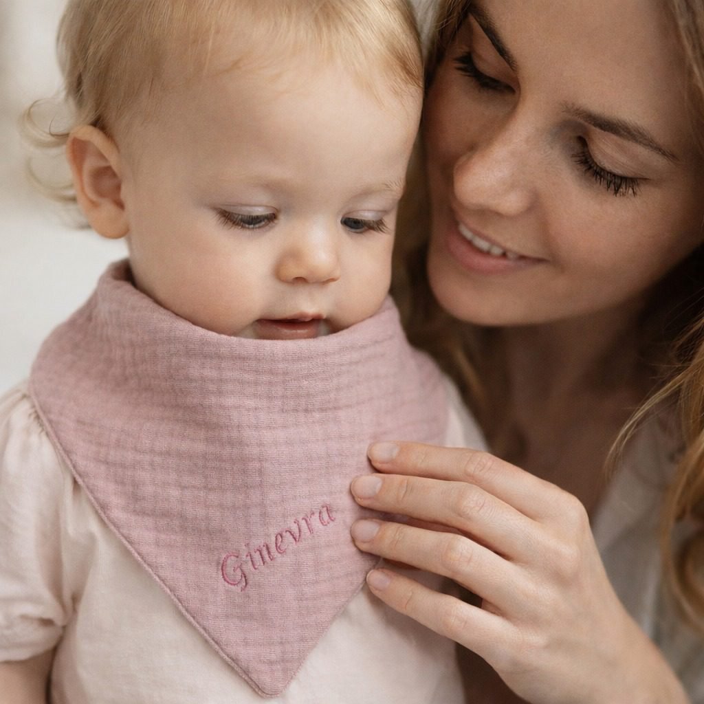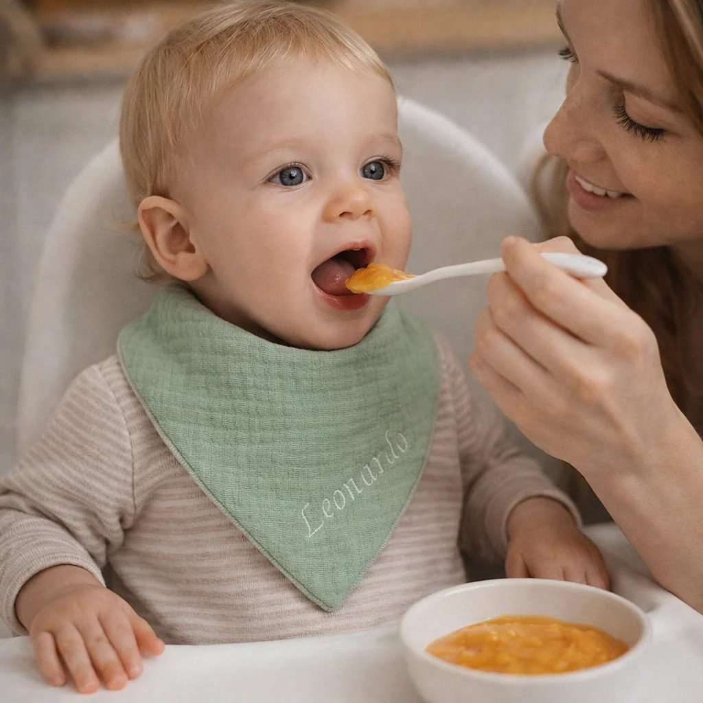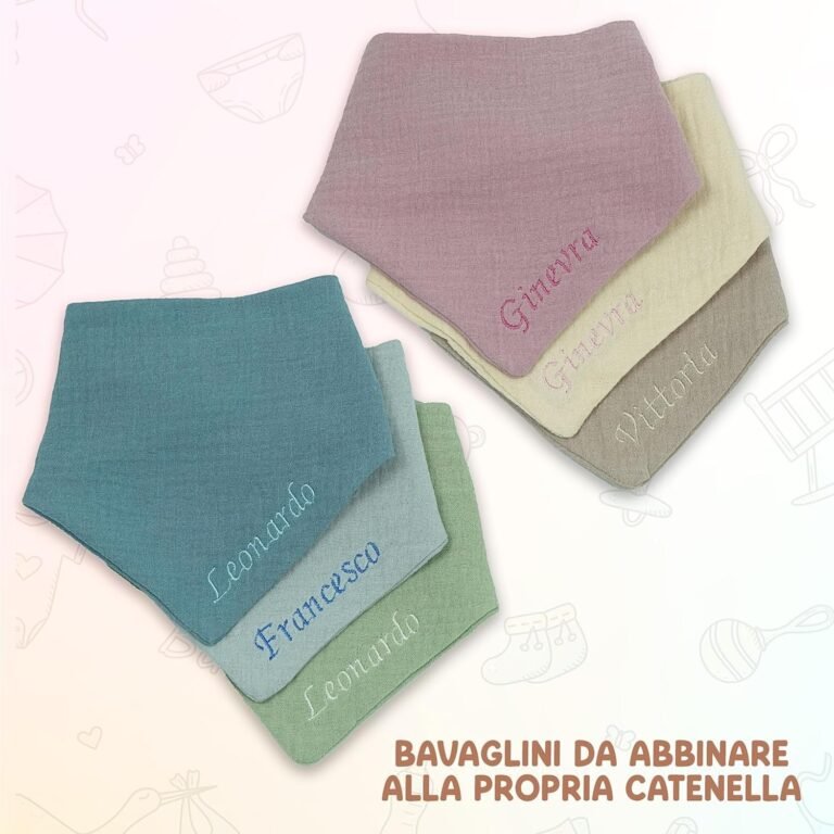 Ogni bavaglino è realizzato in 100% cotone morbido e certificato OEKO-TEX. Nessuna sostanza nociva, nessun rischio solo comfort a contatto con la pelle del tuo bambino.